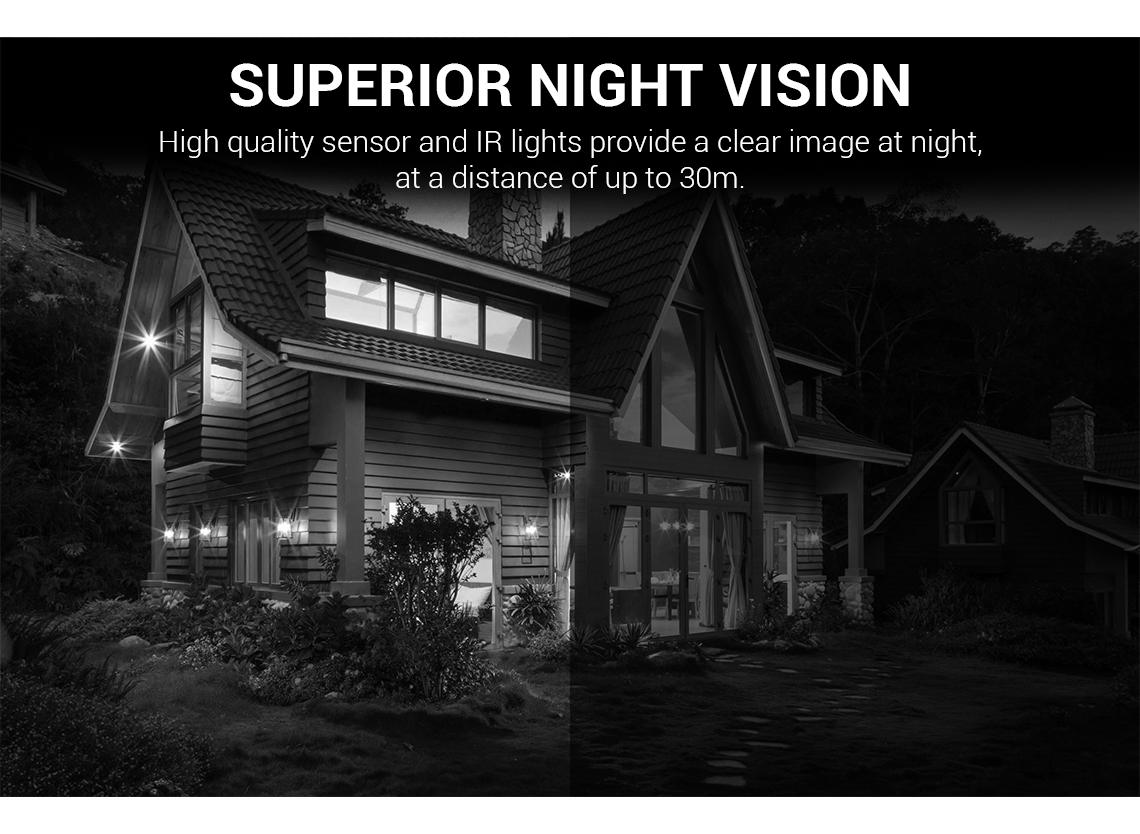 > Built-in multi-core light, the max. IR distance is 30 m and the max. warm light distance is 30 m.