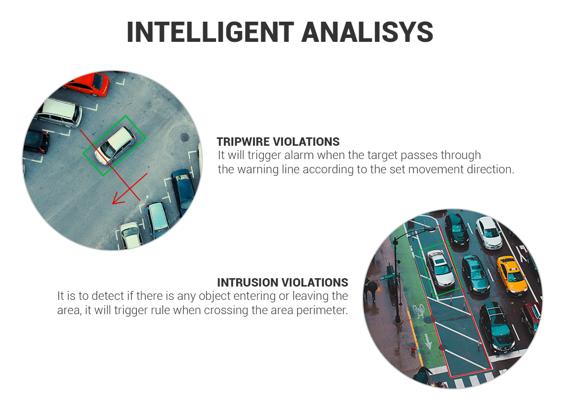 > Intelligent monitoring: Intrusion, tripwire (the two functions support the classification and accurate detection of vehicle and human).