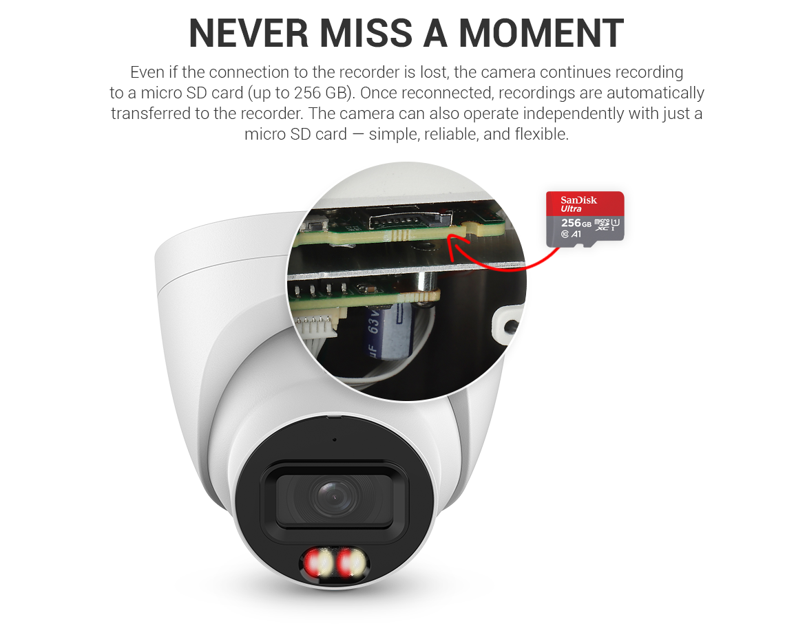 Storage: FTP; SFTP; Micro SD card (max. 256 GB); NAS