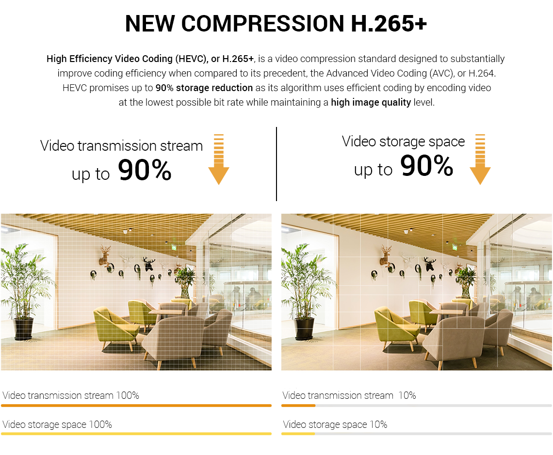 Video Compression: H.265; H.264; H.264B; MJPEG